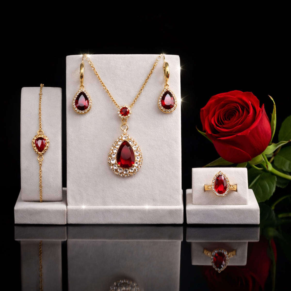 Σετ γυναικείο ( ρολόι (αδιάβροχο) -βραχιόλι – κολιέ-δαχτυλίδι ( one size ) -σκουλαρίκια )