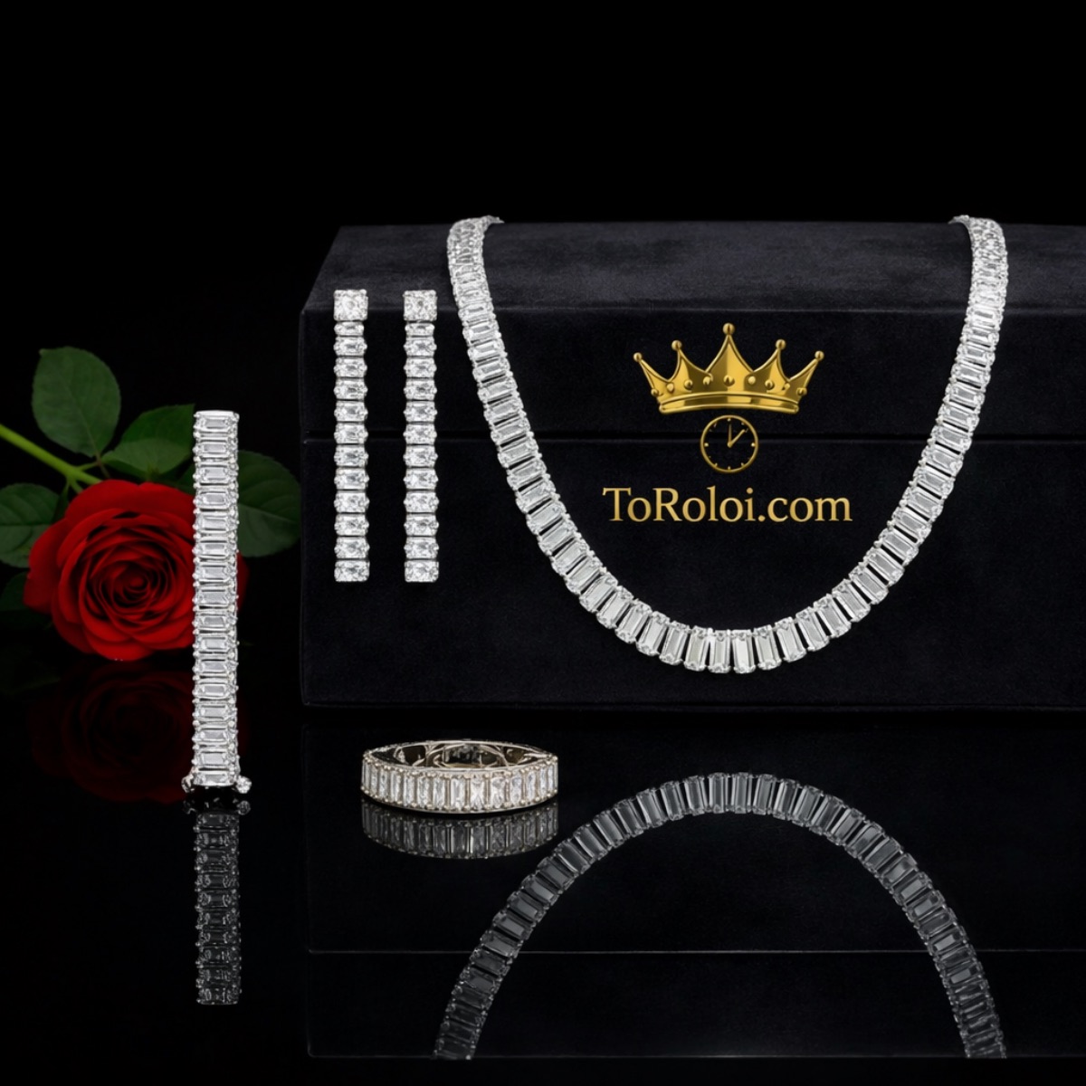 Σετ γυναικείο ( ρολόι – βραχιόλι -κολιέ -δαχτυλίδι-σκουλαρίκια σε δερμάτινη κασσετίνα δώρου )