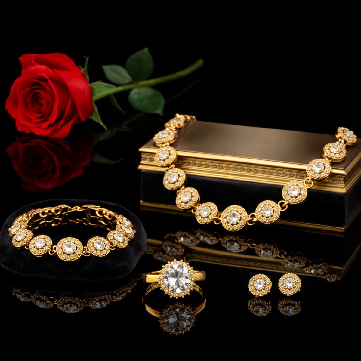 Σετ γυναικείο ριβιέρα ( ρολόι -βραχιόλι – κολιέ-δαχτυλίδι ( one size ) -σκουλαρίκια )