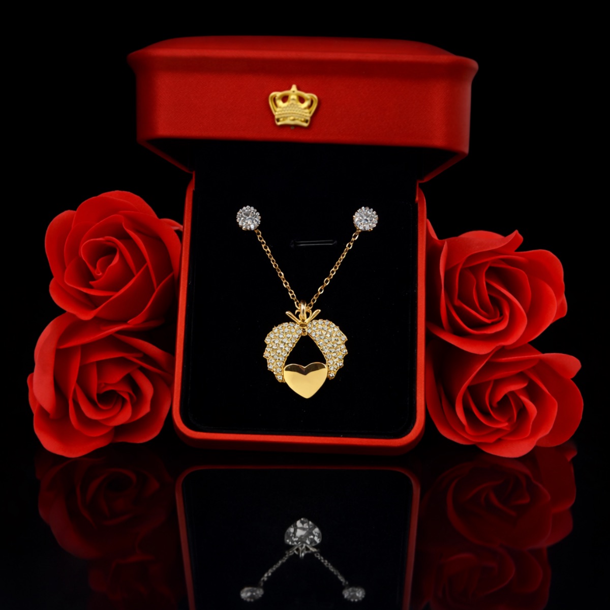 Γυναικείο σετ κολιέ και σκουλαρίκια σε κουτάκι με φως LED