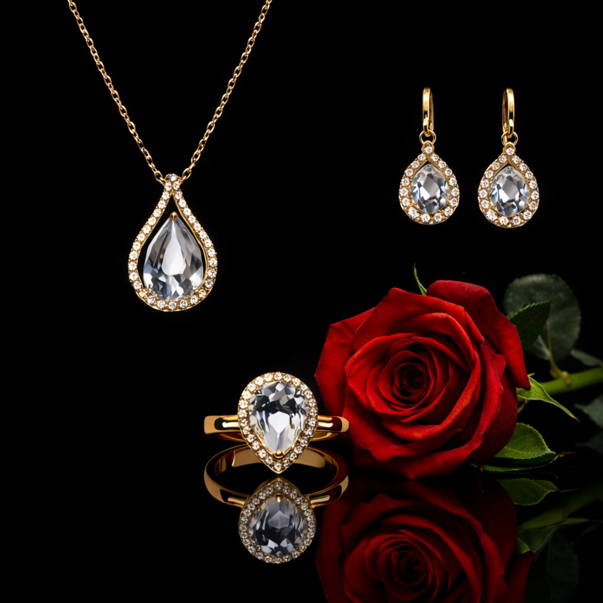 Σετ γυναικείο ρολόι-βραχιόλι-κολιέ -δαχτυλίδι-σκουλαρίκια