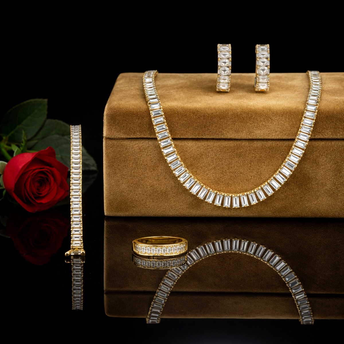 Σετ ριβιέρα γυναικείο ρολόι-χειροπέδα-κολιέ-δαχτυλίδι-σκουλαρίκια